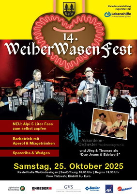 Außerdem besteht nur am WeiherWasenfest, Samstag, 21.09.24 die Möglichkeit zur Reservierung von Sitzplätzen mit festen Platznummern.