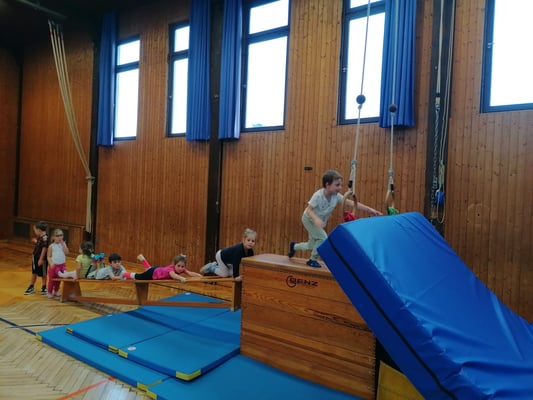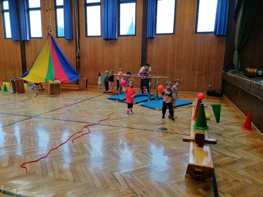 Mit abwechslungsreichen Bewegungslandschaften werden Motorik und Körpergefühl trainiert sowie mit verschiedenen Spielen das Gemeinschaftsgefühl gestärkt.